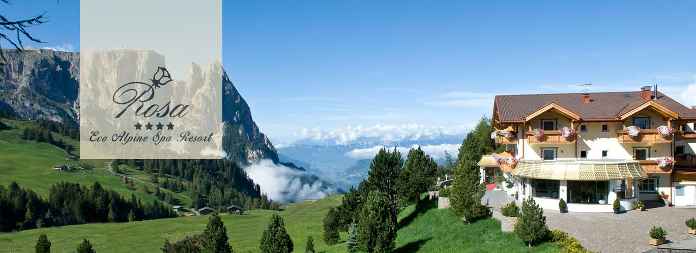 L’Hotel Rosa Eco Alpine Spa Resort, 4 stelle, si trova in mezzo alla natura incontaminata dell’Alpe di Siusi, in Trentino Alto Adige nelle Dolomiti, elette Patrimonio Naturale dell’Umanità. L' Alpe di Siusi è il più grande altopiano d'Europa si trova in Alto Adige ai confini con la Val Gardena collegato con la Cabinovia al Comune di Siusi e Castelrotto, circondato da un panorama alpino veramente mozzafiato, il Sassolungo, il Sassopiatto e lo Sciliar un luogo ideale per vacanze in montagna in estate ed in inverno. Qui a circa 1.800 metri di altitudine si respira aria pura di montagna. L'Hotel di recente ristrutturazione è dotato di Centro Benessere e Beauty Center e di un innovativa piscina panoramica interna ed esterna infinity con vista panoramica. Originale Sauna Kelo unica in Alto Adige e ECO Beauty & Spa Area con prodotti naturali per il Vostro benessere, la Vostra salute e bellezza.
