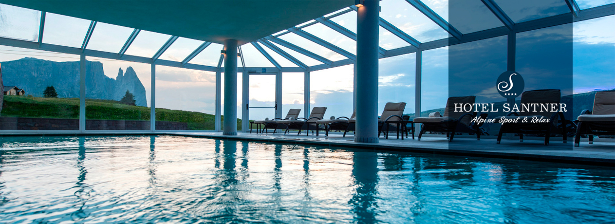 Baciati dal sole in mezzo al bellissimo parco naturale dell’ Alpe di Siusi circondati dallo Sciliar, Sassolungo e Sassopiatto. Il centro Benessere dell'Hotel Santner è l'ideale per rritrovare relax e bellezza. Protagonisti assoluti l’acqua ed il piacere del relax: piscina interna con vista panoramica sulle piste da sci, grotta con idromassaggio esterno, doccia aromatica, sauna, bagno turco, tisane e thè biologici, preparano il corpo e la mente ad una nuova emozionante giornata sull’Alpe di Siusi.